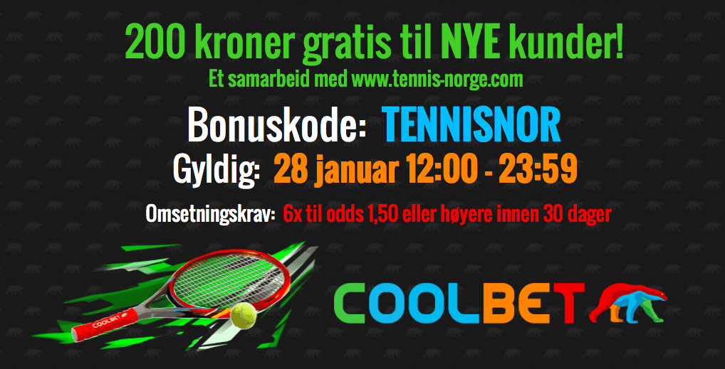 Spillselskapet Coolbet slår på stortromma, og gir, i samarbeid med Tennis-Norge, nye kunder 200 kroner for å bruke på et gratisspill på deres oddsside.