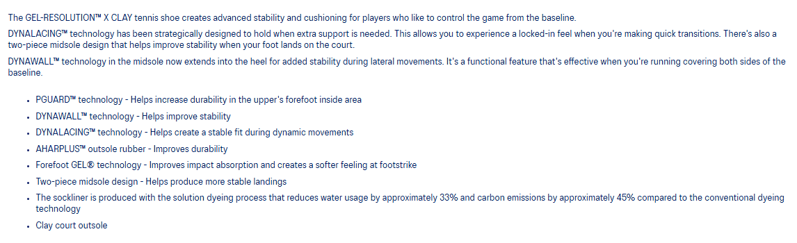 For mer detaljert informasjon om ASICS Gel-Resolution X Clay