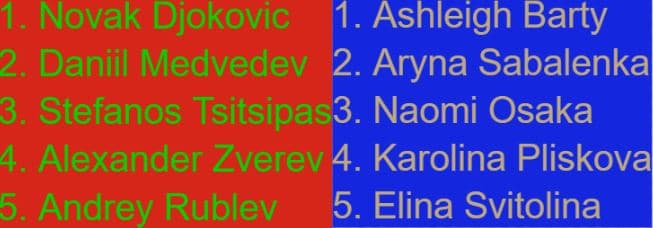 - Dersom første og andre seed møtes i finalen står trofeet mellom Novak Djokovic – Daniil Medvedev og Ashleigh Barty – Aryna Sabalenka.