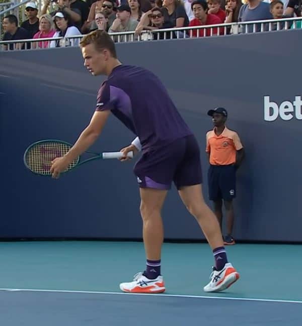 Halvannet døgn forsinket påga regn i solstaten Florida, fikk syvende seeda Casper Ruud omsider spilt sin første kamp. Motstanderen var den franske 19 åringen Luca van Assche.