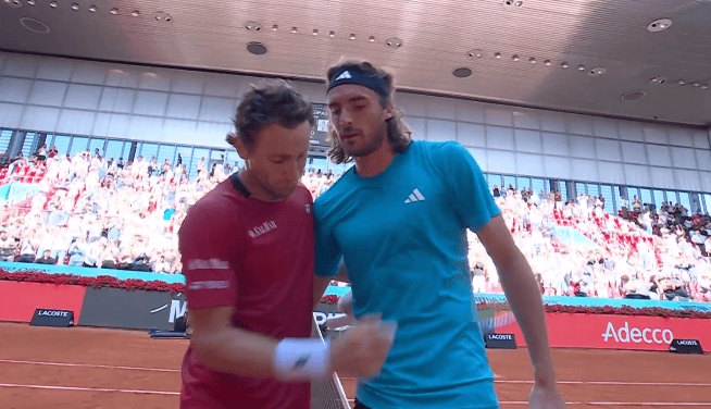 Motstanderen, lenge en Titan av sporten, men nå en fallende stjerne, Stefanos Tsitipas (ATP 80), skulle i utgangspunktet være en grei kamp for formsterke og regjerende mester i Madrid, Casper Ruud – men det ble ikke tilfelle.